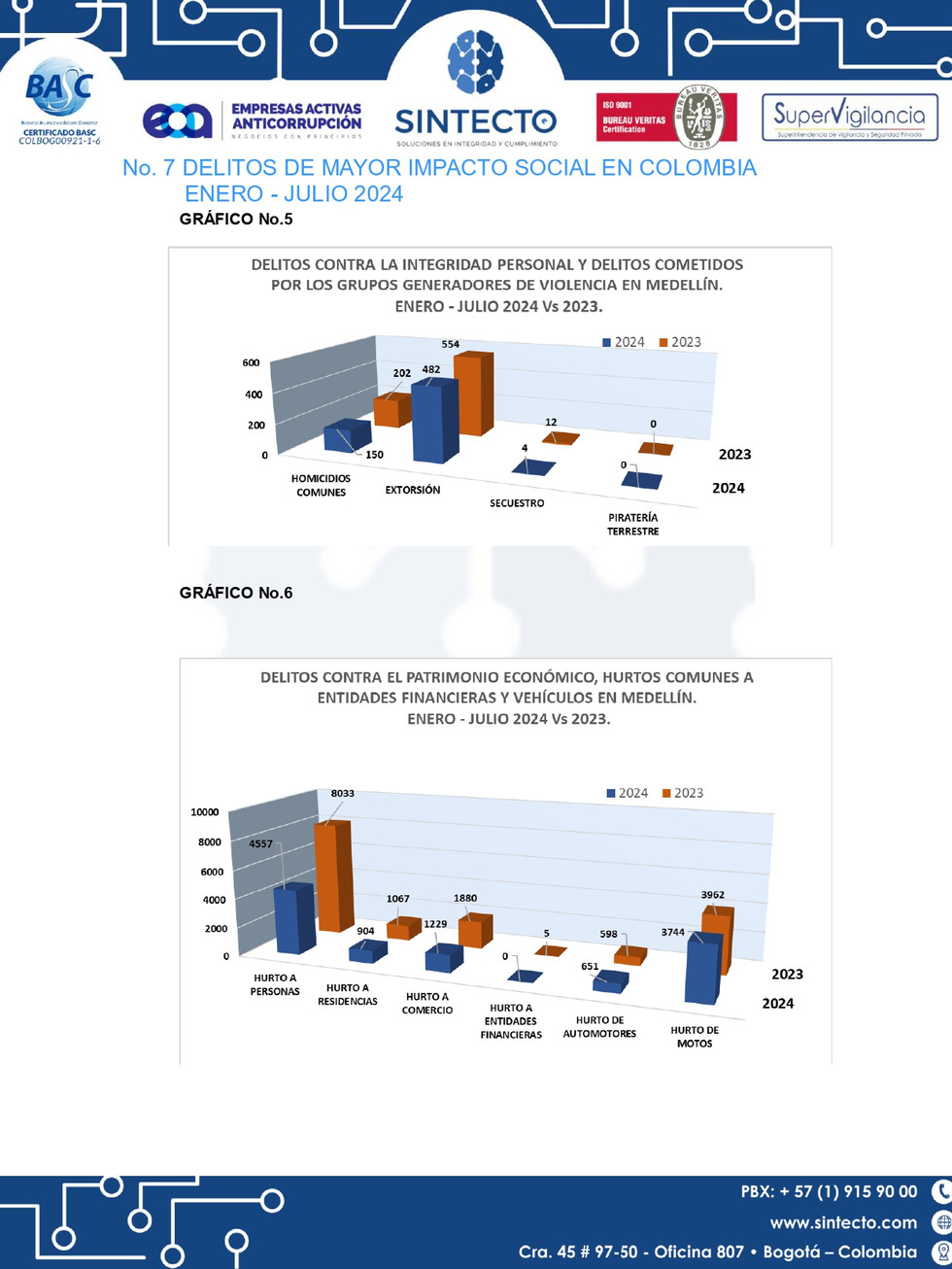 Informe de Extorsiones ocurridas en Colombia durante Enero - Julio 2024